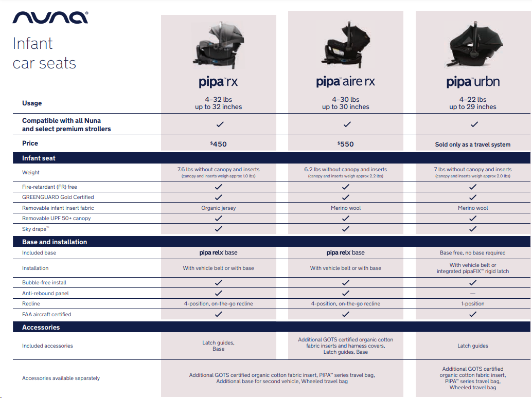 PIPA Infant Car Seat Series Seats and Base Comparison Nuna Baby