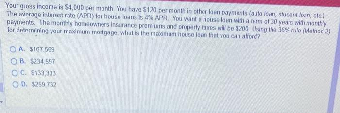 How much house can i clearance get for $4000 a month, Solved Your gross income is 4 000 per month You have 120 Chegg clearance