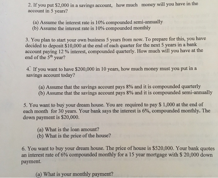 Solved 2. If you put 2 000 in a savings account how much Chegg