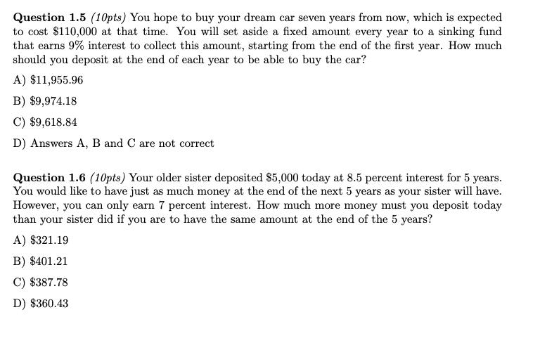 Solved Question 1.5 10pts You hope to buy your dream car Chegg