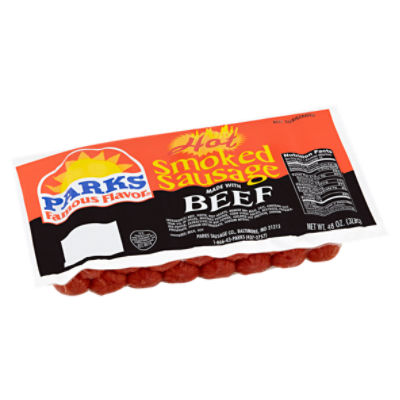 Parks Famous Flavor Hot Smoked Beef Sausage 16 count 48 oz The