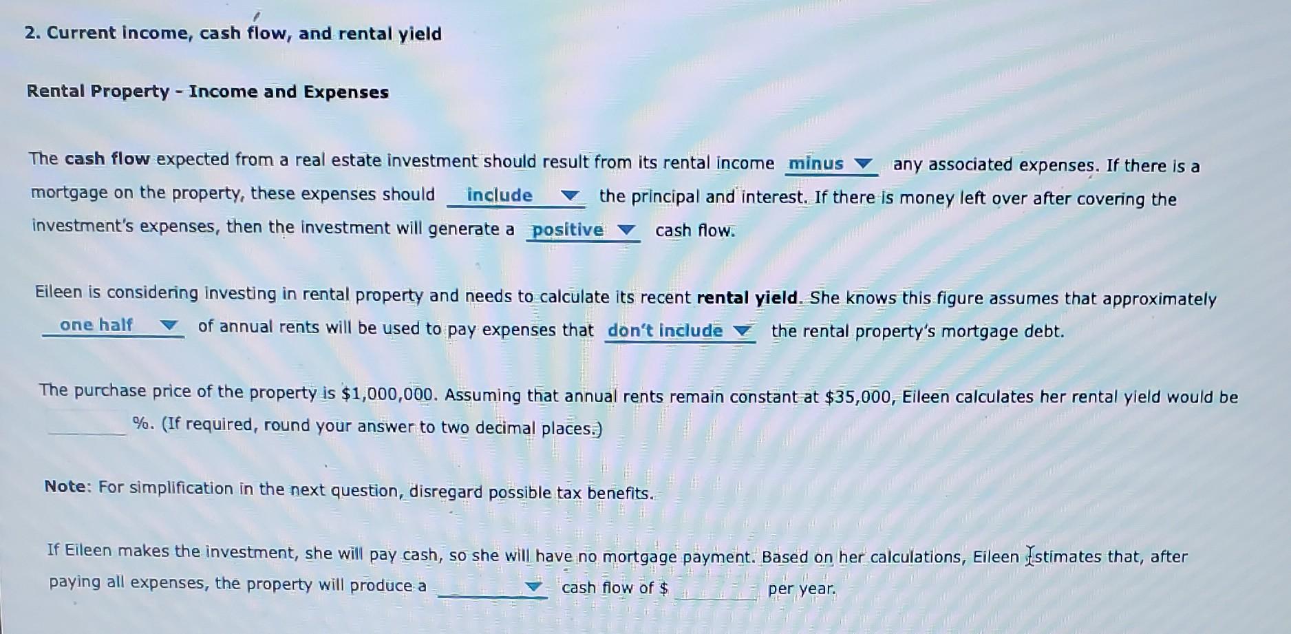 Should i pay cash clearance for a rental property, Solved 2. Current income cash flow and rental yield Rental clearance