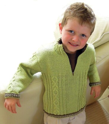 Boys cozy cable jumper with contrasting trim P013 Knitting pattern
