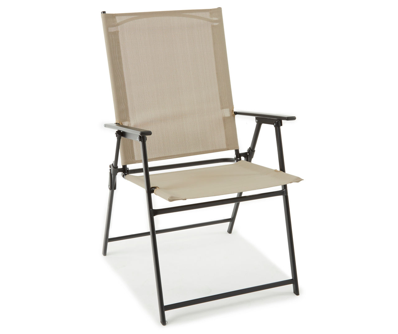 Threshold sling folding clearance patio chair, Wilson Fisher Taupe Sling Fabric Outdoor Folding Chair Big Lots clearance