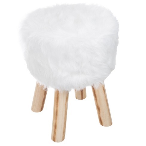 Birdrock Home Faux Fur Foot Stool Ottoman With Wood Legs White