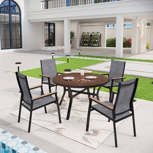 Patio set with clearance umbrella target, 5pc Outdoor Dining Set With Metal Slat Round Table With Umbrella clearance