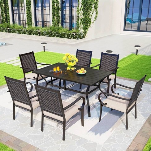 7pc Patio Dining Set With Steel Table Rattan Chairs Captiva