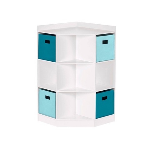 5pc Kids Corner Cabinet Set With 4 Bins White turquoise aqua