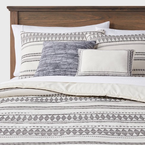 5pc Full Queen Woven Diamond Stripe Comforter Set Cream Black Threshold