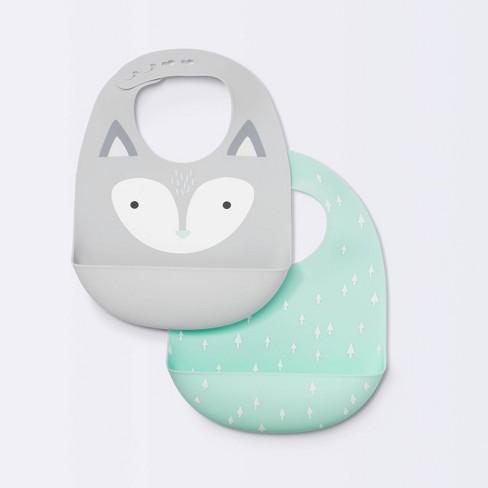Silicone Bibs With Decal 2ct Cloud Island Gray Fox Green