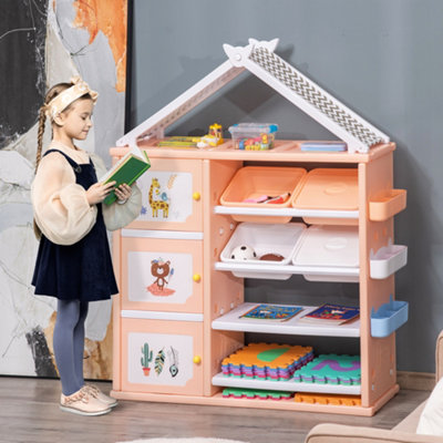 Toy clearance storage organiser, HOMCOM Kids Storage Unit Toy Box Organiser Book Shelf with shelves clearance