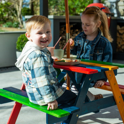 Kids clearance wooden bench, Kids Outdoor Wooden Picnic Bench Table Set With Parasol Umbrella clearance