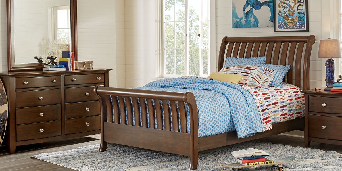 Kids clearance sleigh bed, Kids Santa Cruz Cherry 5 Pc Full Sleigh Bedroom clearance