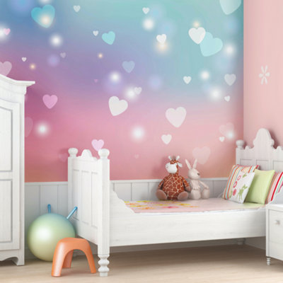 Murals for children's clearance bedrooms, Origin Murals Children s bedroom Pink White Hearts Matt Smooth clearance