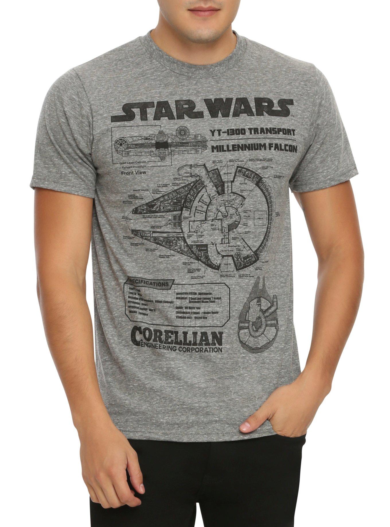 Star wars millennium clearance falcon shirt, Star Wars Millennium Falcon Blueprint T Shirt Hot Topic clearance