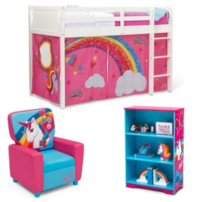 Delta Children Jojo Siwa Twin Low Loft Bed Bedroom Bundle Ashley
