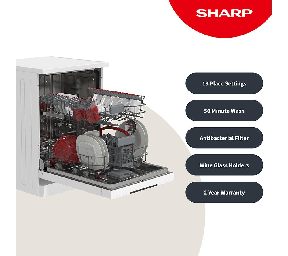 Sharp clearance dishwasher reviews, Buy SHARP QW NA1CF47EW Full size Dishwasher White Currys clearance