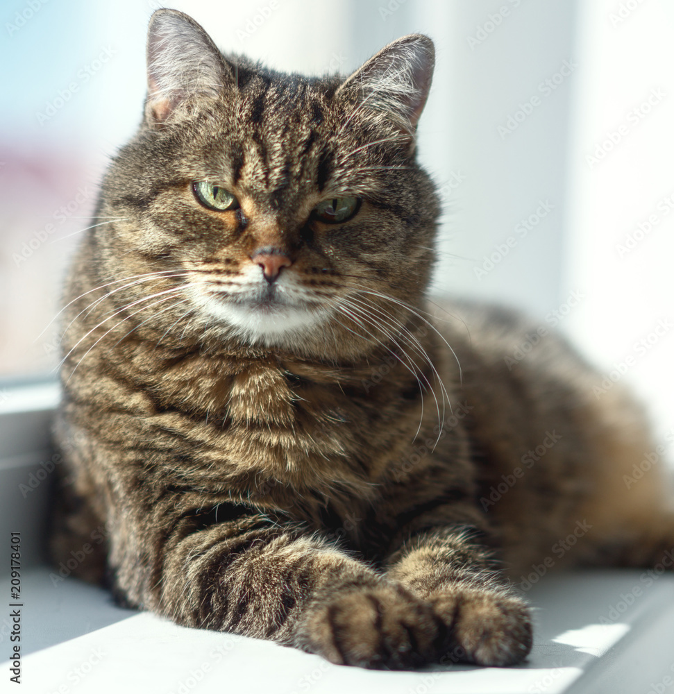 serious cat relaxed on the window Stock Photo Adobe Stock