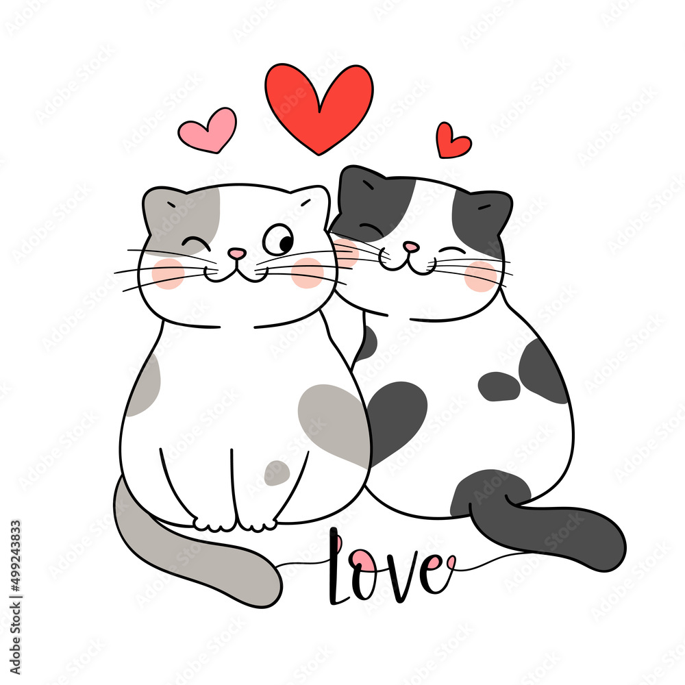 Adore cats clearance, Draw couple love cats for valentines day Love concept Stock Vector clearance