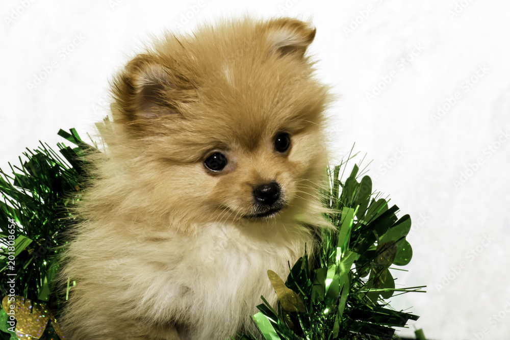 Tan clearance pomeranian puppy, Tan Pomeranian Puppy Wrapped up in a Green and Gold St. Patrick s clearance