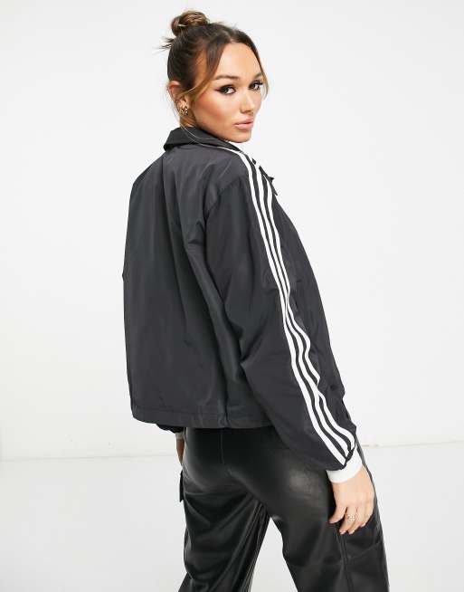 adidas Originals three stripe coach jacket in black ASOS