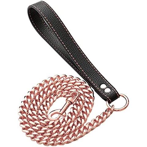 Rose clearance gold leash, GZMZC Dog Chain Leash Rose Gold 15MM Heavy Duty Dog Leash Chains clearance