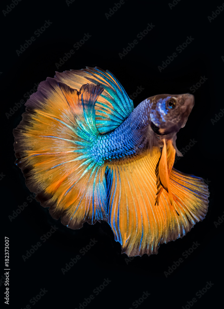 Betta fish Siamese fighting fish blue and yellow isolated on