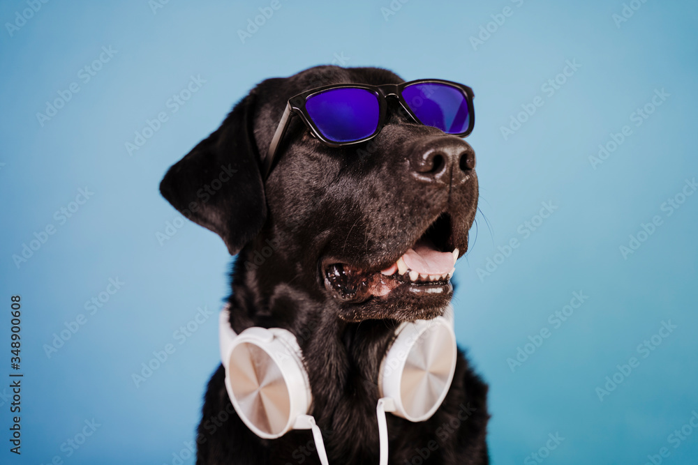 Dog labrador with sunglasses funny dog. Stock Photo Adobe Stock