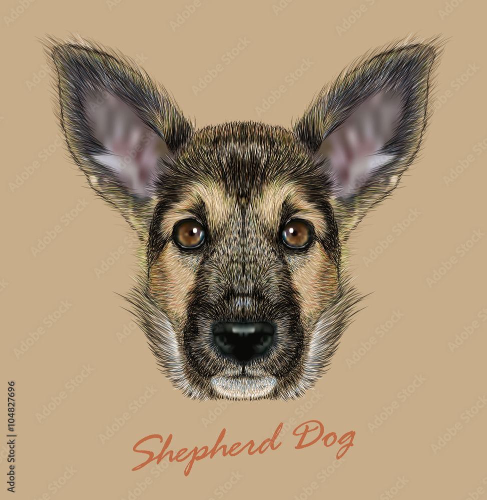 Shepherd Dog animal cute face. Vector funny german shepherd puppy