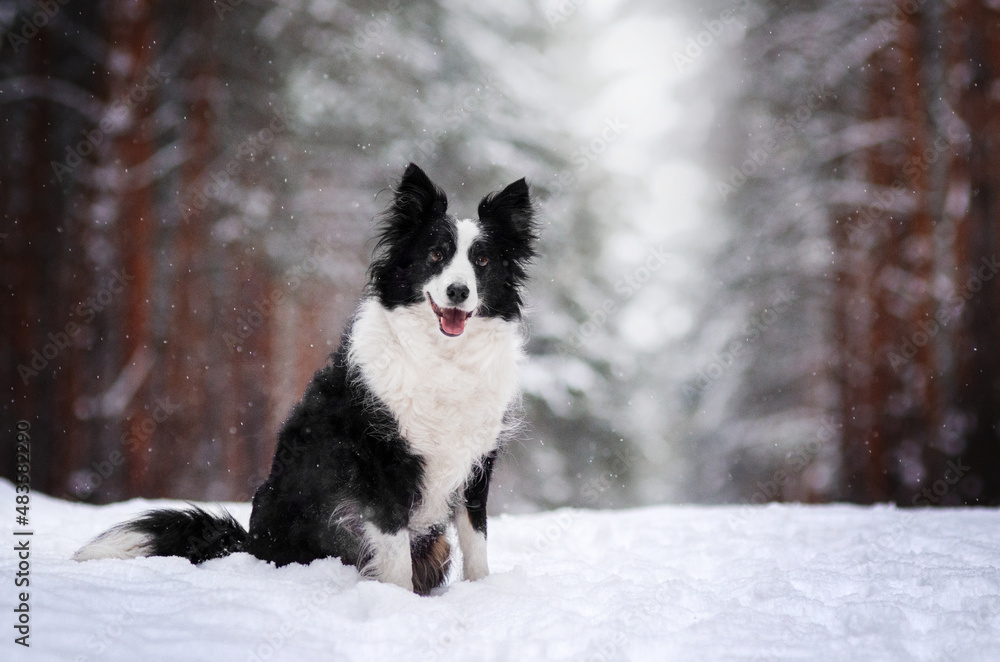 Border clearance collie snow, White Black Border Collie Dog Is Walking On Snow In Snow Falling clearance