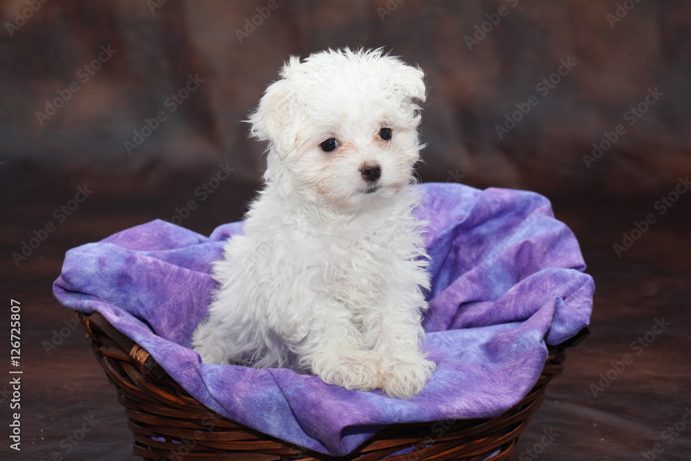 8 week old Maltese puppy in basket Stock Photo Adobe Stock