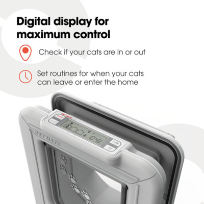 Cat Mate Elite Microchip Cat Flap with Digital Timer LCD Display Easy Installation in UPVC Doors Glass and Wooden Doors White