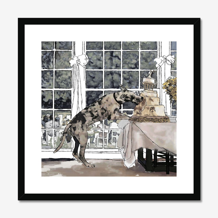 Whimsical Cake Great Dane Art Print Box framed and mounted Wall art