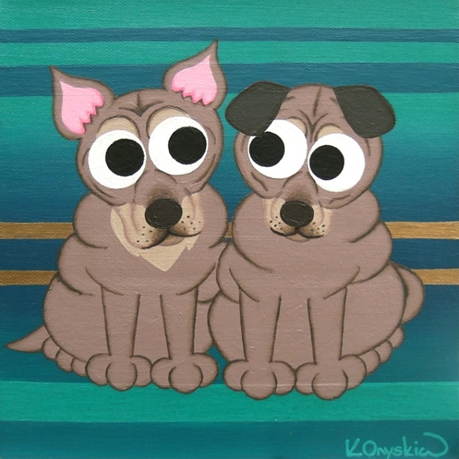Shar clearance pei art, Dogs in Love Painting on Teal Green Striped Can Folksy clearance