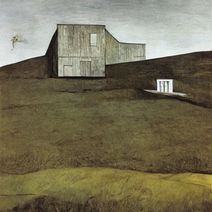 Andrew wyeth dog clearance in barn, prompthunt a building in a landscape by andrew wyeth clearance