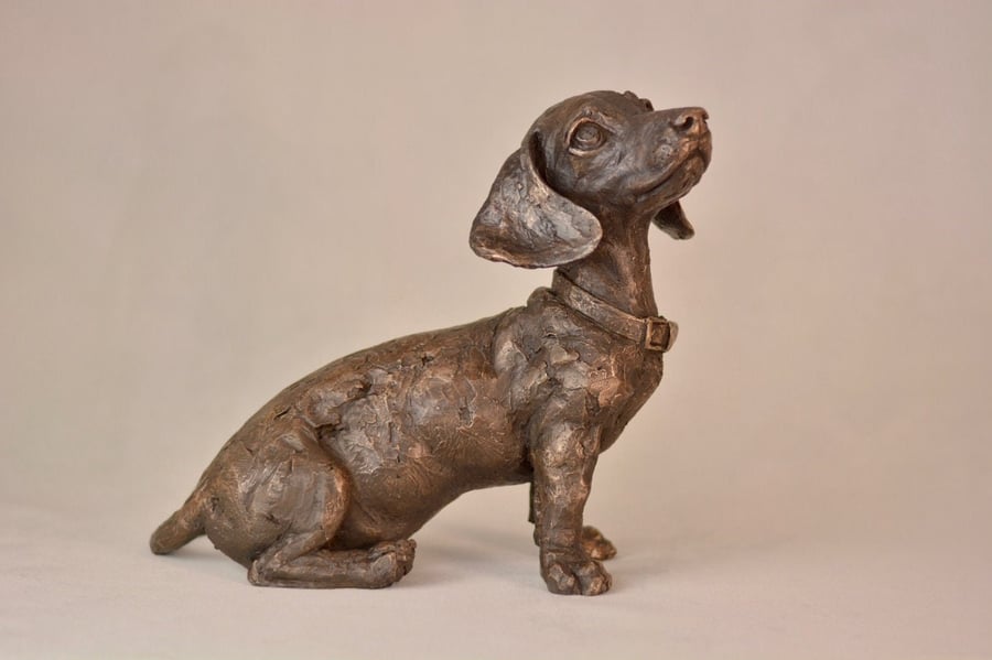 Sitting Dachshund Puppy Dog Statue Bronze Resin Folksy