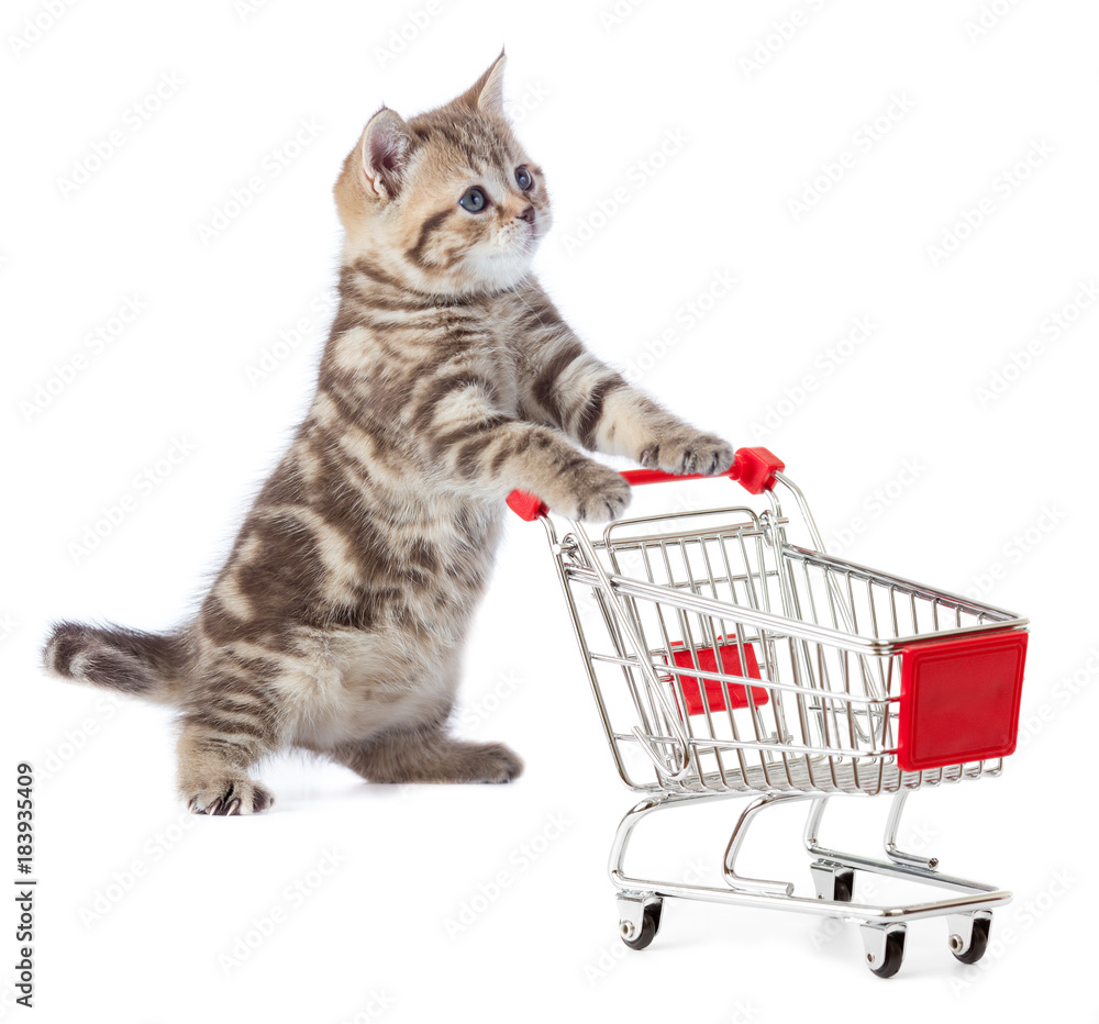 Cat with shopping cart. isolated Stock Photo Adobe Stock