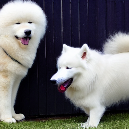 prompthunt A photo of a Samoyed dog with its tongue out hugging a