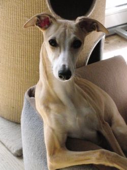 Pretty elegant golden Whippet. Dog anatomy Grey hound dog