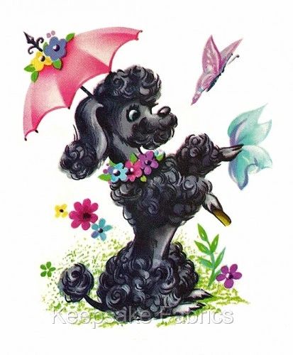 50 s Vintage Poodle Umbrella Crazy Quilt Fabric Block