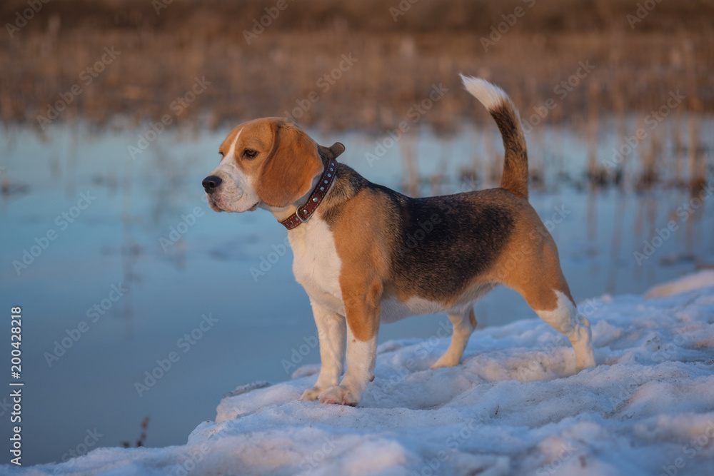 Beagle dog during duck hunting Stock Photo Adobe Stock
