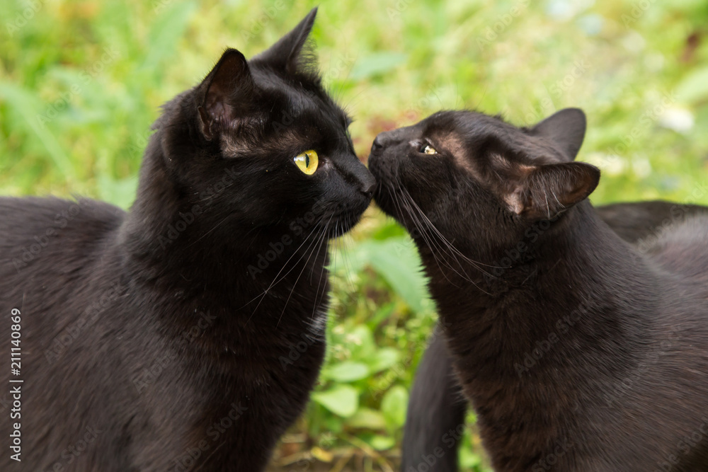 2 clearance black cats, Two cute black cats kissing. Love tenderness family concept clearance