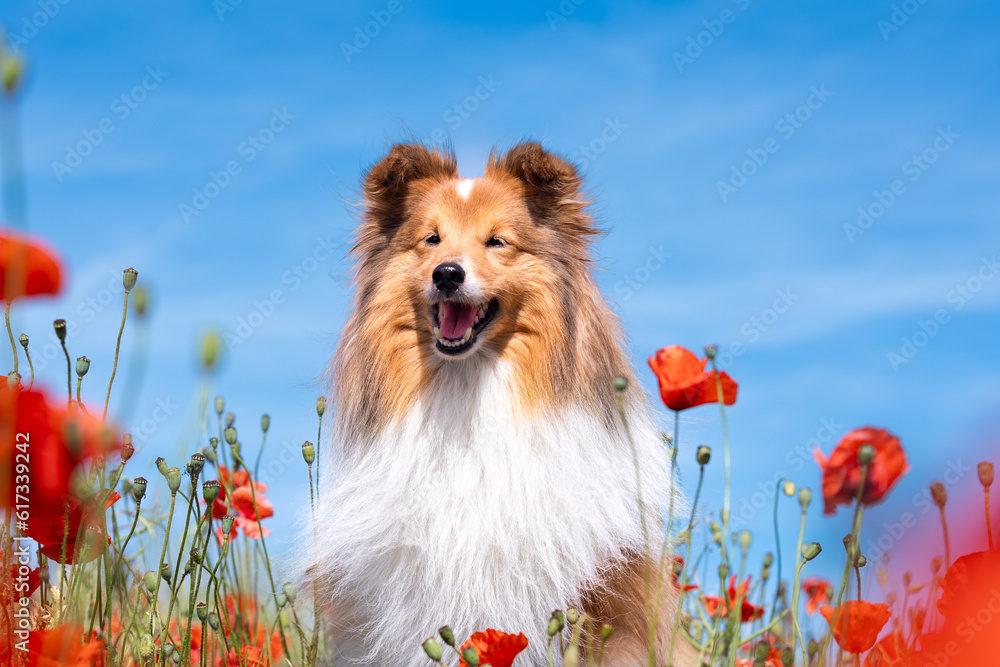 Beautiful shetland sheepdog little lassie dog sitting in the