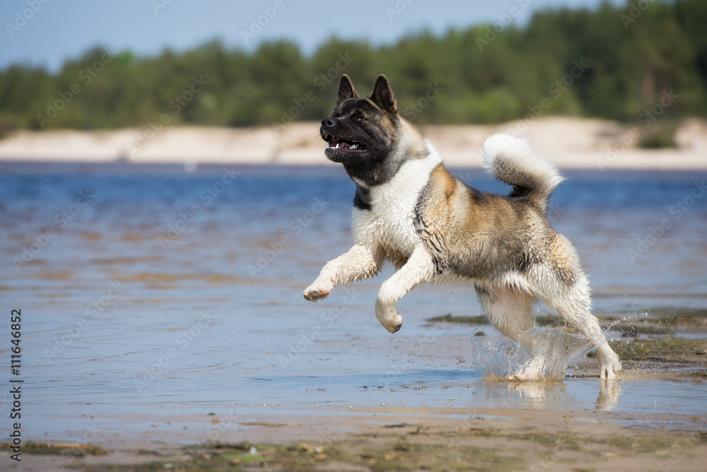 akita inu dog running outdoors in summer Stock Photo Adobe Stock