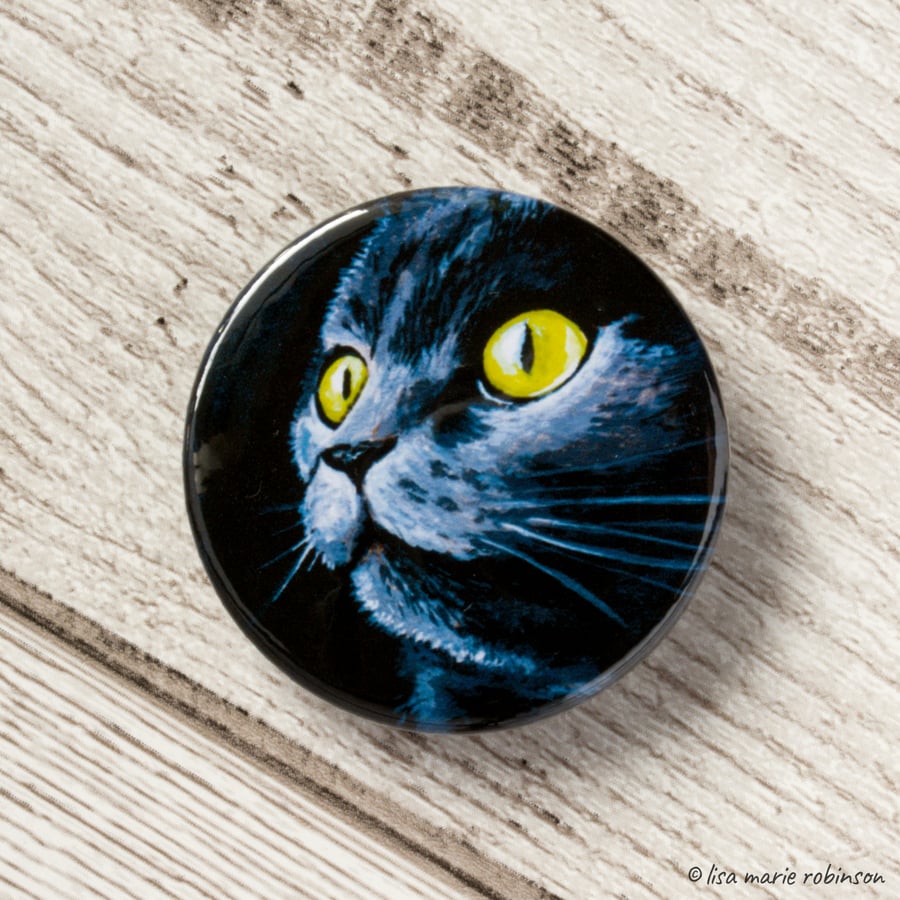 Dark grey cat clearance with yellow eyes, Dark Grey Cat Yellow Eyes Kitty Button Badge Folksy clearance