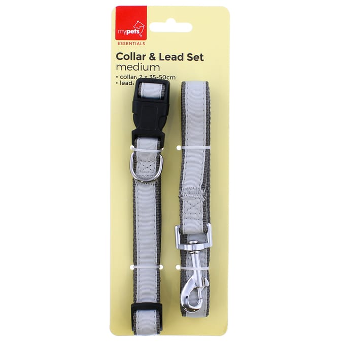 My Pets Collar Lead Set Grey Small medium large dog leads