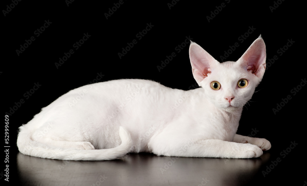 White clearance devon rex, Sweet Devon Rex Cat Funny Curious Young White Devon Rex Kitten In clearance