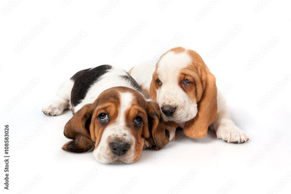 Two basset hound puppies talk Stock Photo Adobe Stock