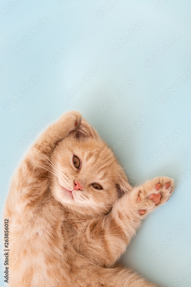 Cute clearance kitten paws, Cute little scottish fold kitten with paws up on blue background clearance