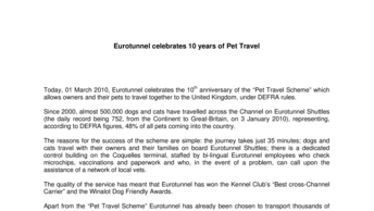 Eurotunnel pet travel clearance scheme, Eurotunnel celebrates 10 years of Pet Travel clearance